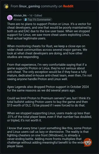 arrow-up1572arrow-down1imagedeveloper of game 'Rust' talks about anticheat on linuxplus-squarelemmy.zipCus@lemmy.zip to Linux Gaming@lemmy.worldEnglish · 1 day agomessage-square243fedilink