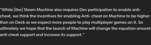 arrow-up1335arrow-down1imageEurogamer asked Valve if there had been any progress in helping games requiring kernel-level anti-cheat, with Valve responding that the Steam Machine's expected focus on multiplayer gaming could encouplus-squaremr_MADAFAKA@lemmy.ml to Linux Gaming@lemmy.worldEnglish · 2 days agomessage-square96fedilink