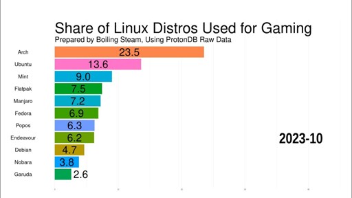 Pleasantly surprised that Arch tops the chart. Then again, and I might be wrong about this, but to me a clear bias in the ProtonDB data is that those who submit reports to ProtonDB are usually users who are likely used to submitting bug reports and stuff, so obviously not your average “freshly migrated from Windows” gamer.