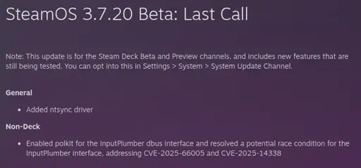 commander@lemmy.world to Linux Gaming@lemmy.worldEnglish · 2 months agoLatest SteamOS Beta Now Includes NTSYNC Kernel Driverwww.phoronix.comexternal-linkmessage-square1fedilinkarrow-up151arrow-down10