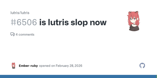 arrow-up1259arrow-down1external-linkLutris maintainer: "I've removed the Claude co-authorship from the commits a few days ago. So good luck figuring out what's generated and what is not."plus-squaregithub.combdonvr@thelemmy.club to Linux Gaming@lemmy.worldEnglish · 8 hours agomessage-square72fedilink