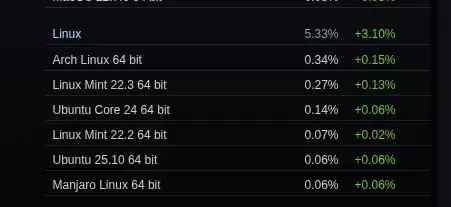 arrow-up1646arrow-down1imageLinux reaches new massive peak of 5.33% in Steam Hardware & Software Survey: March 2026plus-squaremr_MADAFAKA@lemmy.ml to Linux Gaming@lemmy.worldEnglish · 3 days agomessage-square82fedilink