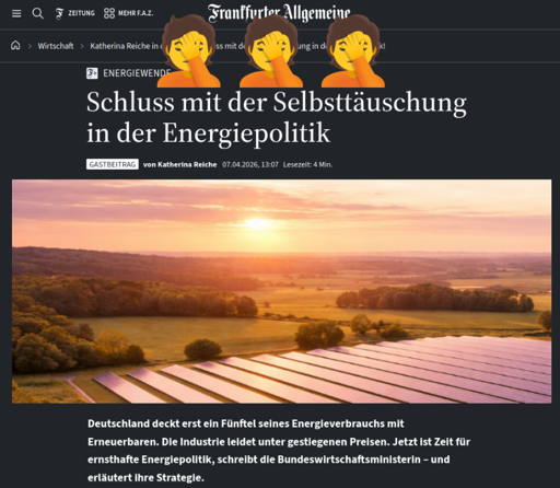 Ich habe mir den Artikel von Reiche durchgelesen: https://www.faz.net/aktuell/wirtschaft/katherina-reiche-jetzt-ist-zeit-fuer-ernsthafte-energiepolitik-accg-200707552.html