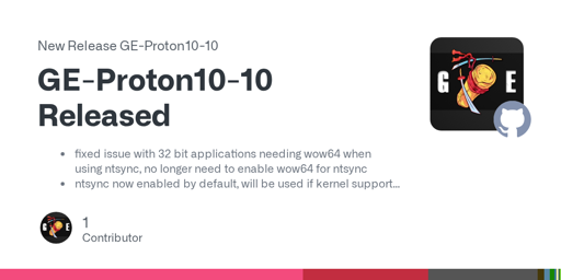 CannonGoBoom@lemmy.world to Linux Gaming@lemmy.worldEnglish · 2 months agoGE-Proton10-26 Releasedplus-squaregithub.comexternal-linkmessage-square2fedilinkarrow-up179arrow-down10